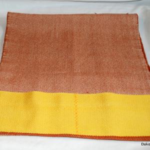 The lap towels are made from 5/2 Pearl Cotton. You will love the density of this towel. Once on your lap it will stay and perform its function for you. I wouldn’t spin or do fiber prep without one!